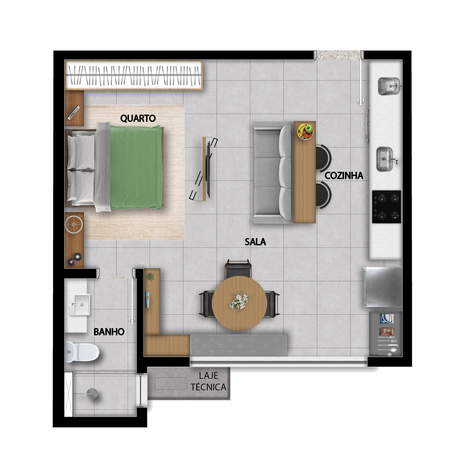 *Previsão para ar-condicionado na sala apenas para os apartamentos de 2 quartos.