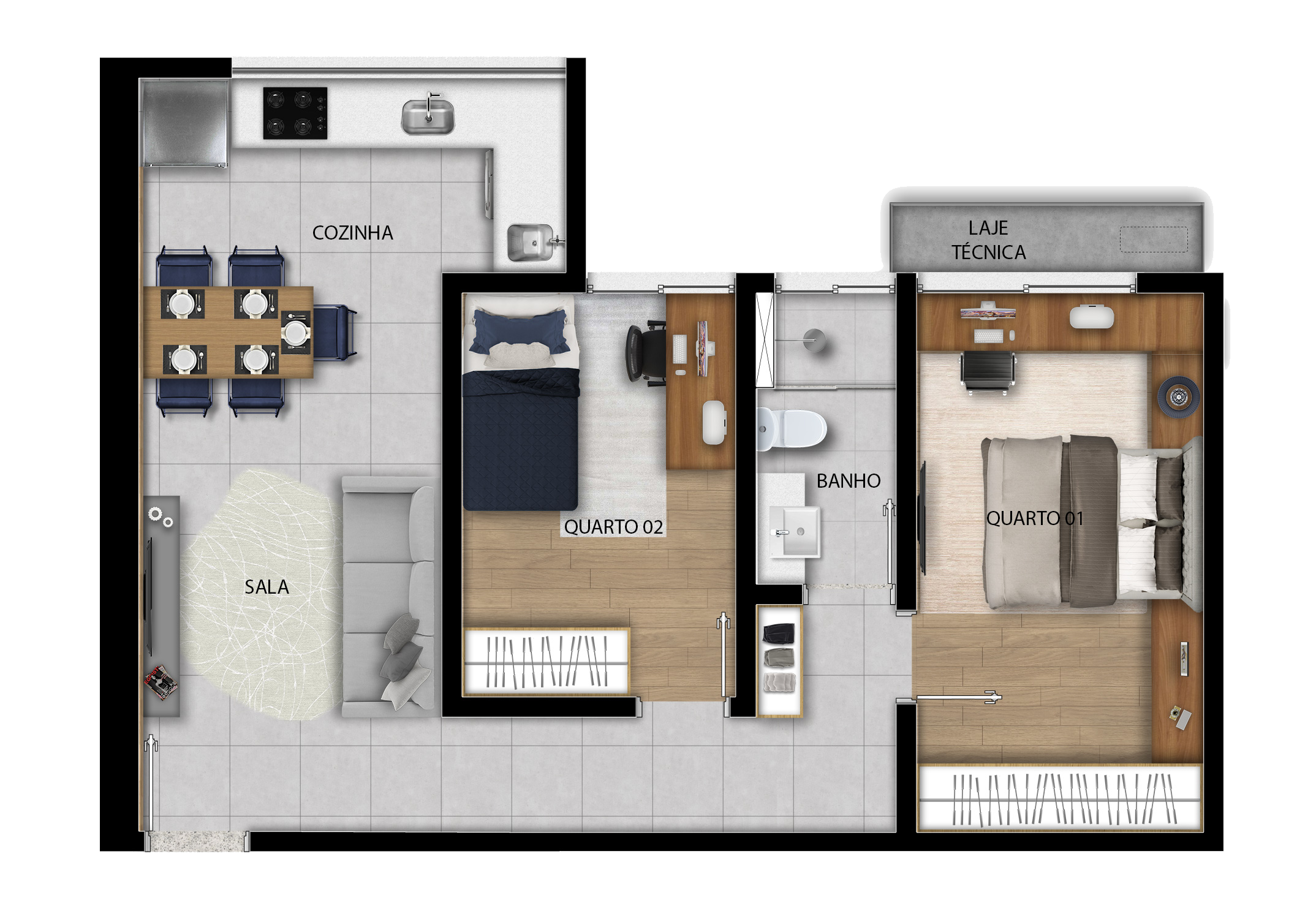 *Previsão para ar-condicionado na sala apenas para os apartamentos de 2 quartos.